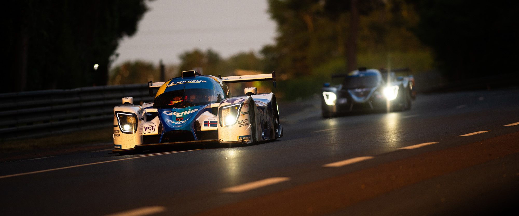 Despite the penalty, what were the positives that Audunn Gudmunsson took away from a competitive showing at Le Mans? “Actually, it was not so frustrating,” he admitted. “After I was forced off the track /made a mistake and needed to go to pit to replace the front end of the car, we were running towards the back of the field. Then the safety car came out at exactly the correct time for us and all of a sudden, we were number one; this position was not earned, but just luck.It was super nice to see when Colin posted the fastest lap and came over the finish line in P1. That made us believe that we have a strong car, team and drivers.”