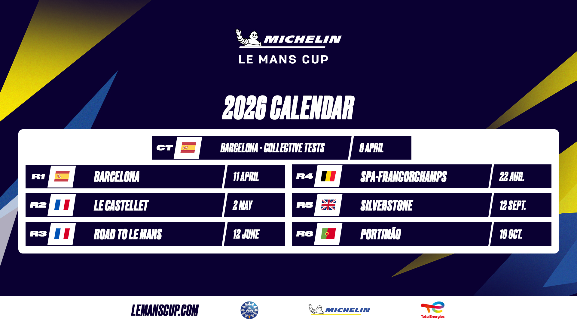 Frédéric Lequien, Le Mans Endurance Management (LMEM) CEO: “The Michelin Le Mans Cup remains a very important step on the endurance racing ladder that leads to the ELMS, FIA World Endurance Championship and, ultimately, the 24 Hours of Le Mans. The 2026 calendar mirrors the six locations of 2025, allowing LMEM to strengthen events and grow fan support.