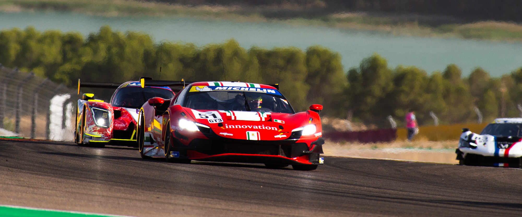En GT3, la Porsche n°64 de Team Parker Racing a reculé en cinquième position. La Porsche de HCR with CaffeineSix (n°86) est en tête aux mains d’Anders Fjordbach, qui compte 4’’2 secondes sur l’Aston Martin n°10 de Valentin Hasse Clot. Les deux Ferrari 296 GT3 AF Corse d’Emmanuel Collard (n°83) et Kei Cozzolino (n°51) sont à la lutte pour la troisième place pendant plusieurs tours, avant que Cozzolino ne trouve l’ouverture.