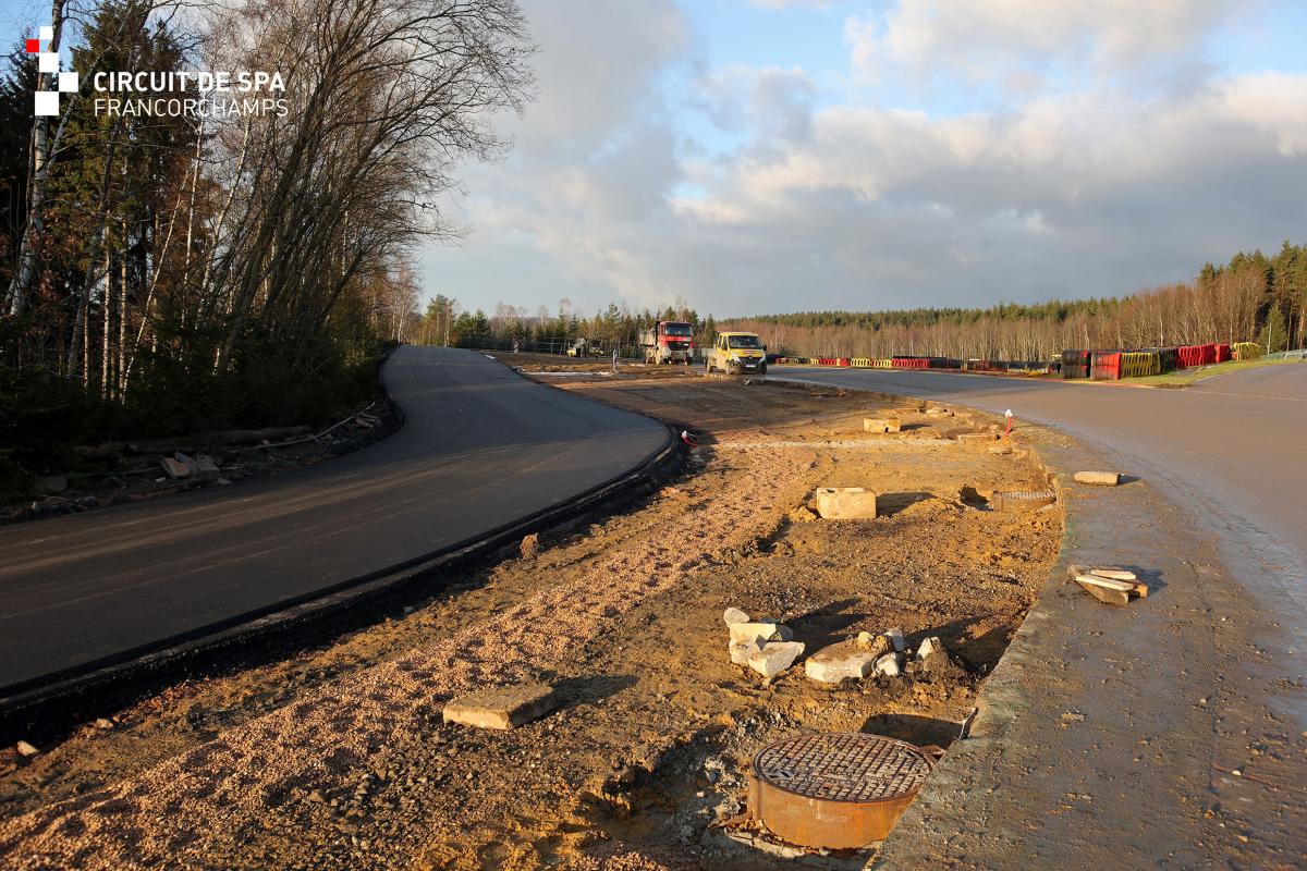 La surface bitumée du sommet du Raidillon (Virage 4) sera élargie du côté droit de la piste. La partie gauche du Raidillon (Virage 3) profitera également d’un dégagement bitumé élargi. Pour l’Eau Rouge, au pied du Raidillon (Virage 2), les rails de sécurités seront déplacés, permettant l’élargissement de cette zone de dégagement. Une tribune couverte sera érigée fin avril au sommet du Raidillon, dotée de 4600 places et de loges VIP.